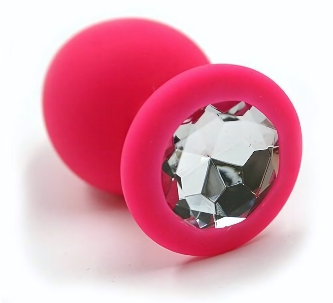 Анальная пробка силиконовая 'Kanikule anal plugs', 7см/3.5см, розовая с кристаллом