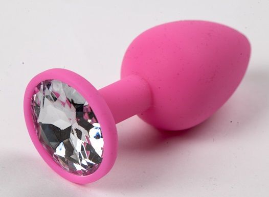Анальная пробка силиконовая 7,1см/2,8см, с прозрачным стразом, розовая