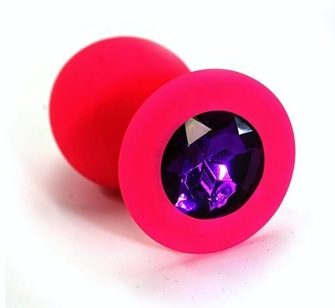 Анальная пробка Kanikule с фиолетовым кристаллом, силикон, 7х3.5 см, удобная форма, гигиеничная