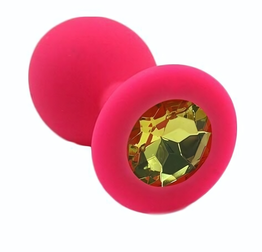 Анальная пробка силиконовая 'Kanikule anal plugs', диаметр 3.5см, длина 7см, желтый кристалл