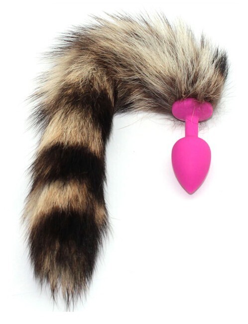 Пробка с хвостом силиконовая, бархатистая поверхность и мех, 25 см, диаметр 2,8 см, цвета: розовый/черный/бежевый