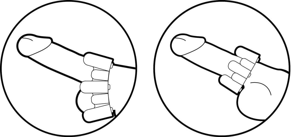 Модель надевается на основание полового члена, при желании может использоваться с охватом мошонки, что позволяет выбрать наиболее комфортный и эффективный вариант. Кольцо подходит для применения как с презервативом, так и без него. Шесть встроенных вибрирующих элементов обеспечивают выраженную стимуляцию и равномерное распределение вибрации.