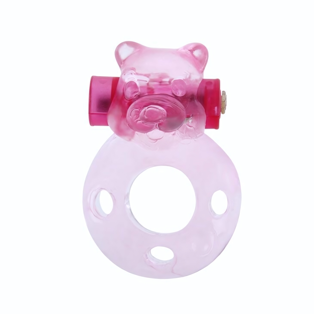Эрекционное виброкольцо Baile с вибрацией и фигурой мишки, розовое, диаметр 1.8 см