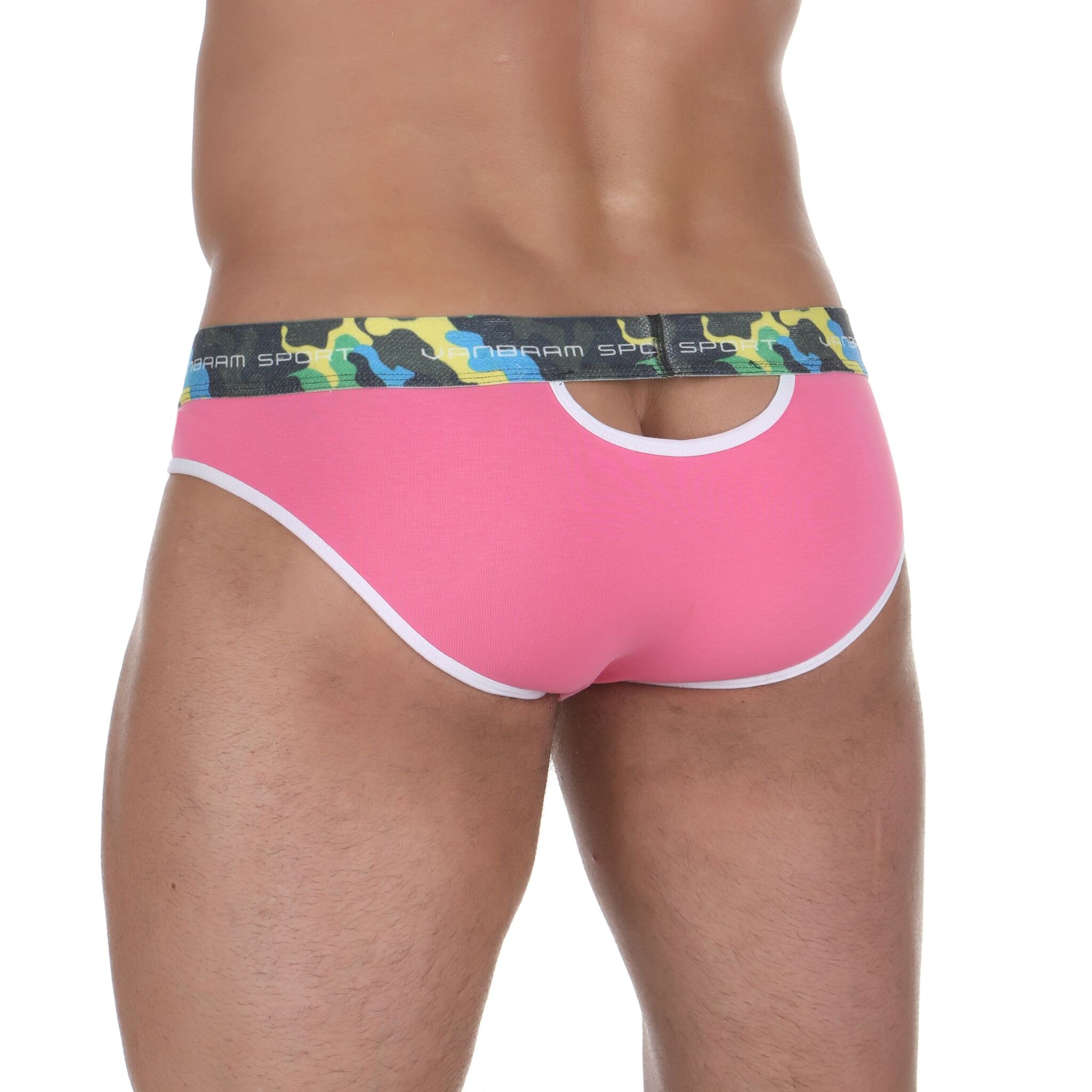 Трусы-слипы мужские "VANBRAM SPORT" розовые с камуфляжным поясом, размер M