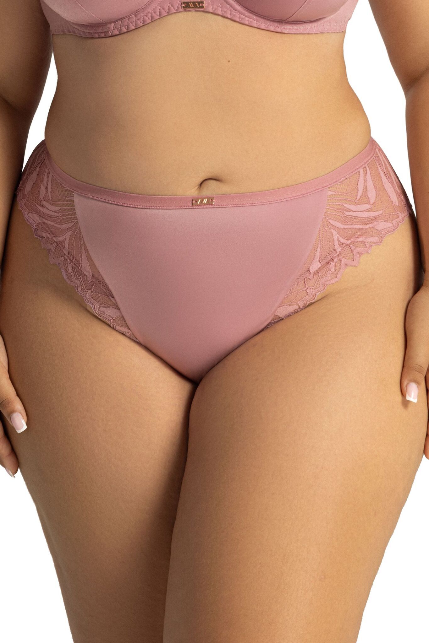 Трусики-бразилиана «Yasemin» с кружевными вставками, размер L, грязно-розовый, 91% полиамид