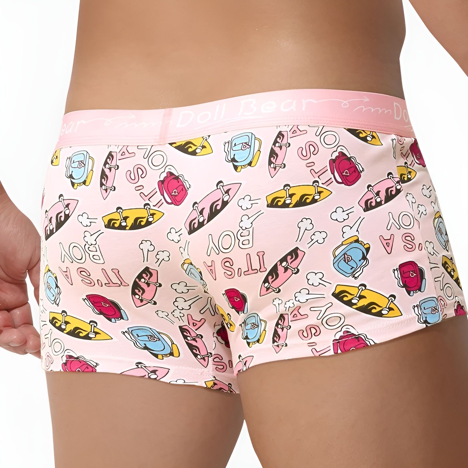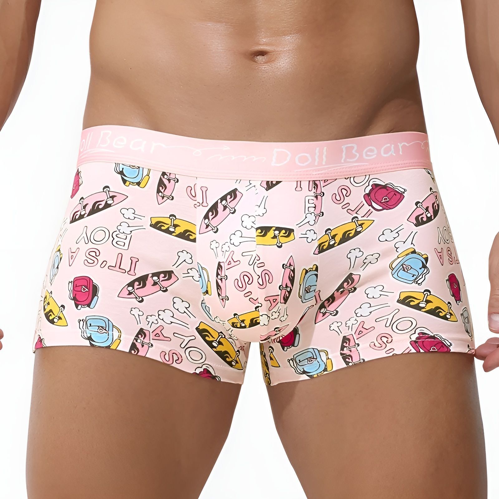 Эти розовые трусы-боксеры с ярким принтом в стиле скейтбордов создают ощущение комфорта и свободы для повседневного использования и домашнего отдыха.