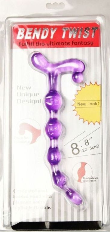 Анальная цепочка 'Bendy Twist', 22см, фиолетовая, TPR, диаметр 2.5см