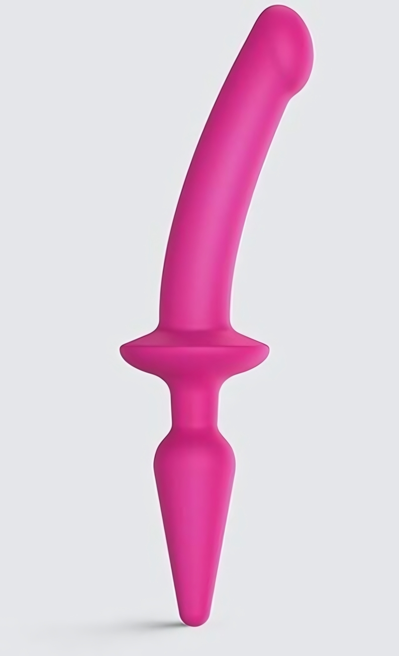 Двусторонний фаллоимитатор "Switch Plug-In", силикон, розовый, 12.8/8см