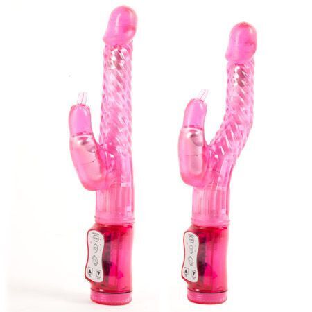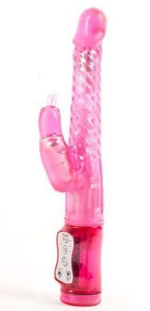 Вибратор розовый с клиторальной стимуляцией, 24,5см, TPE, 12 режимов