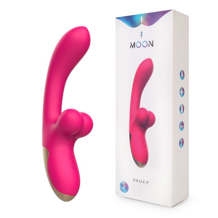 Вибратор-кролик «WHALE-P» с 10 режимами вибрации, изогнутый для G-точки, розовый силикон, 21.2 см