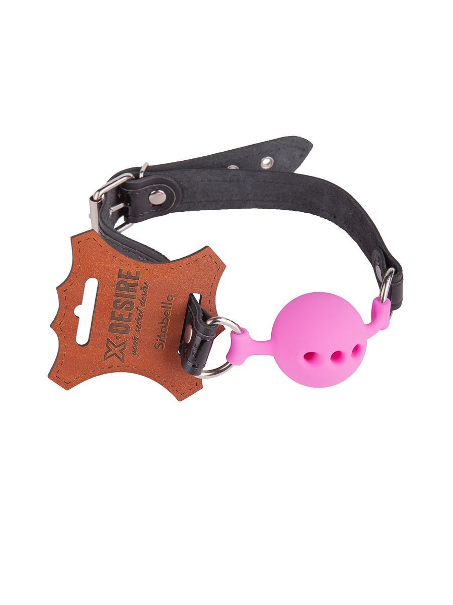 Кляп-шар силиконовый розовый, черные кожаные ремешки, регулируемый размер
