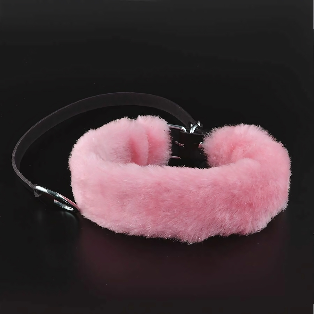 Мягкая подкладка предотвращает натирание, сохраняя кожу защищённой. Универсальный размер с возможностью точной регулировки подходит для разных анатомических особенностей. Сочетание контрастных текстур (пушистый мех и гладкая кожа) создаёт визуальную глубину аксессуара.
