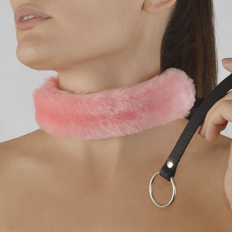 Ошейник с поводком BDSM «BDSM accessories», розовый мех, натуральная кожа, металл, комфорт