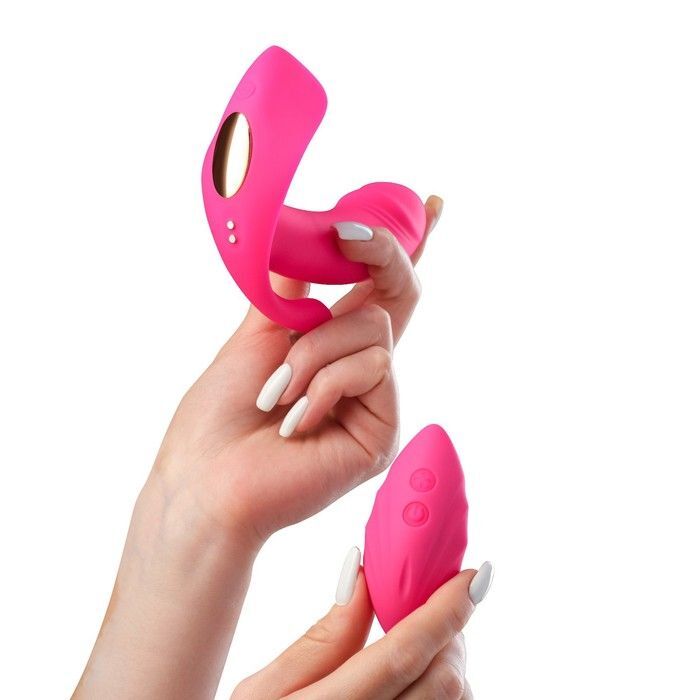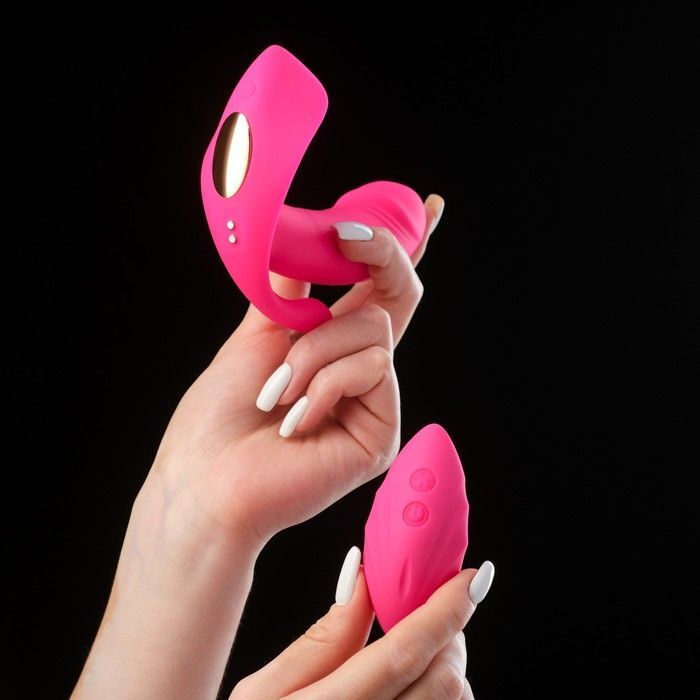Розовый многофункциональный вибромассажер с пультом ДУ