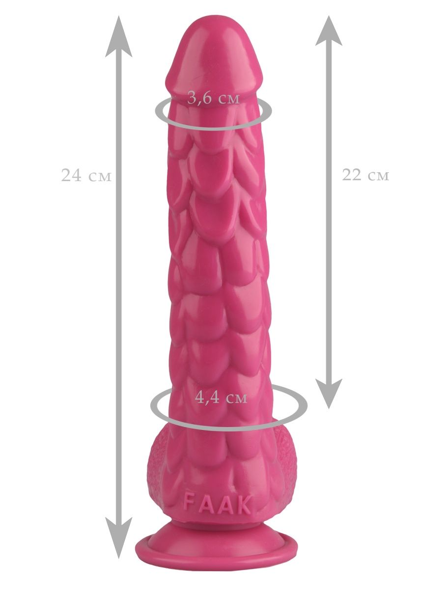 Общая длина изделия составляет 24 см, из которых рабочая (вводимая) часть — 22 см. Диаметр варьируется от 3,6 см в верхней части до 4,4 см в основании, что обеспечивает постепенное и комфортное наполнение. Изделие поставляется в одном цвете — розовом.