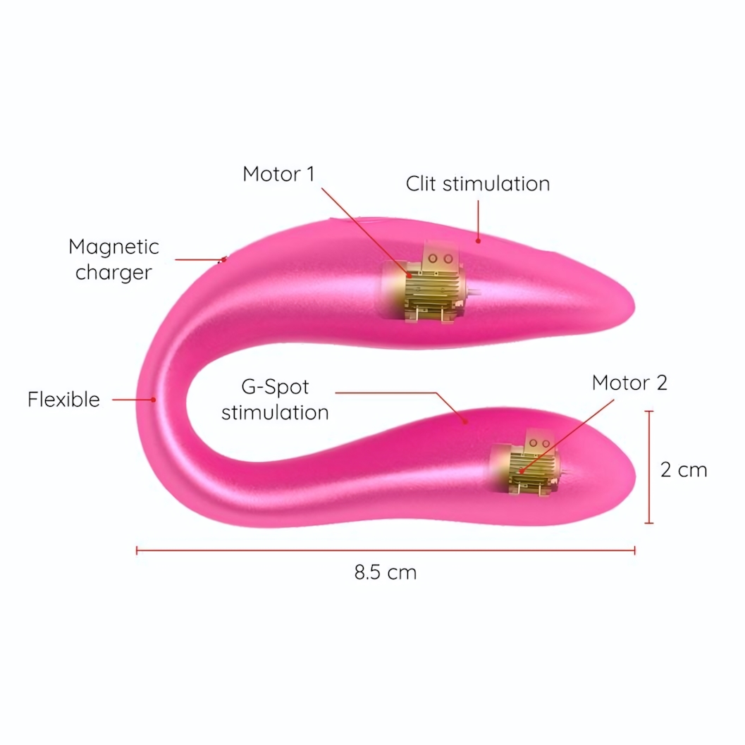 Устройство оснащено двумя независимыми мощными моторами, которые создают глубокие и точные вибрации. Продуманная конструкция позволяет партнерам чувствовать каждое движение, усиливая взаимные ощущения. Вы можете выбрать один из 10 встроенных режимов вибрации — от нежных пульсаций до интенсивных ритмов.