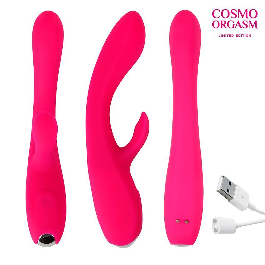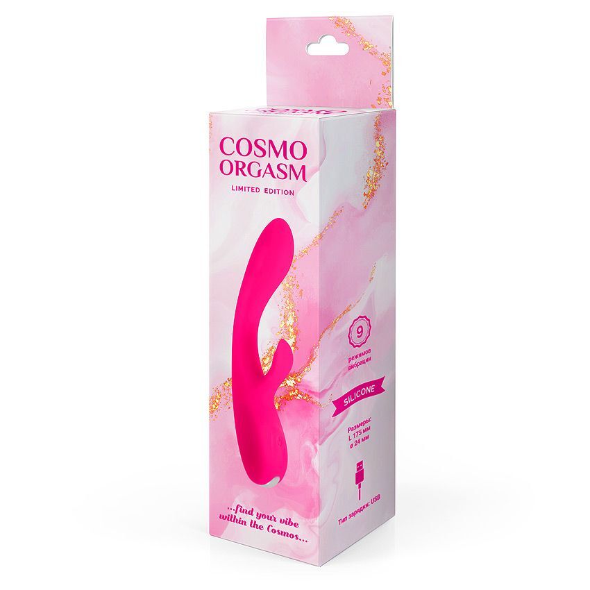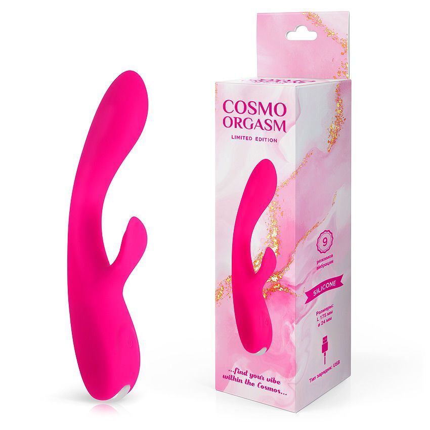 Вибратор с клиторальным отростком "Cosmo Orgasm", 9 режимов, розовый силикон, 17,5 см