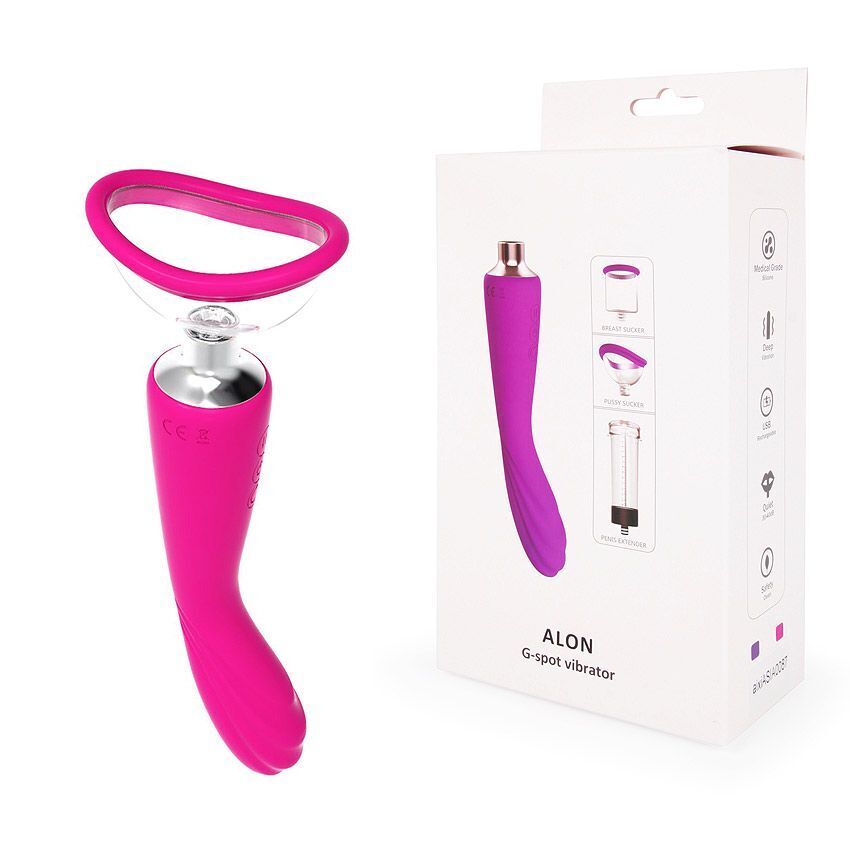 Розовый вибратор Alon с вакуумной чашей