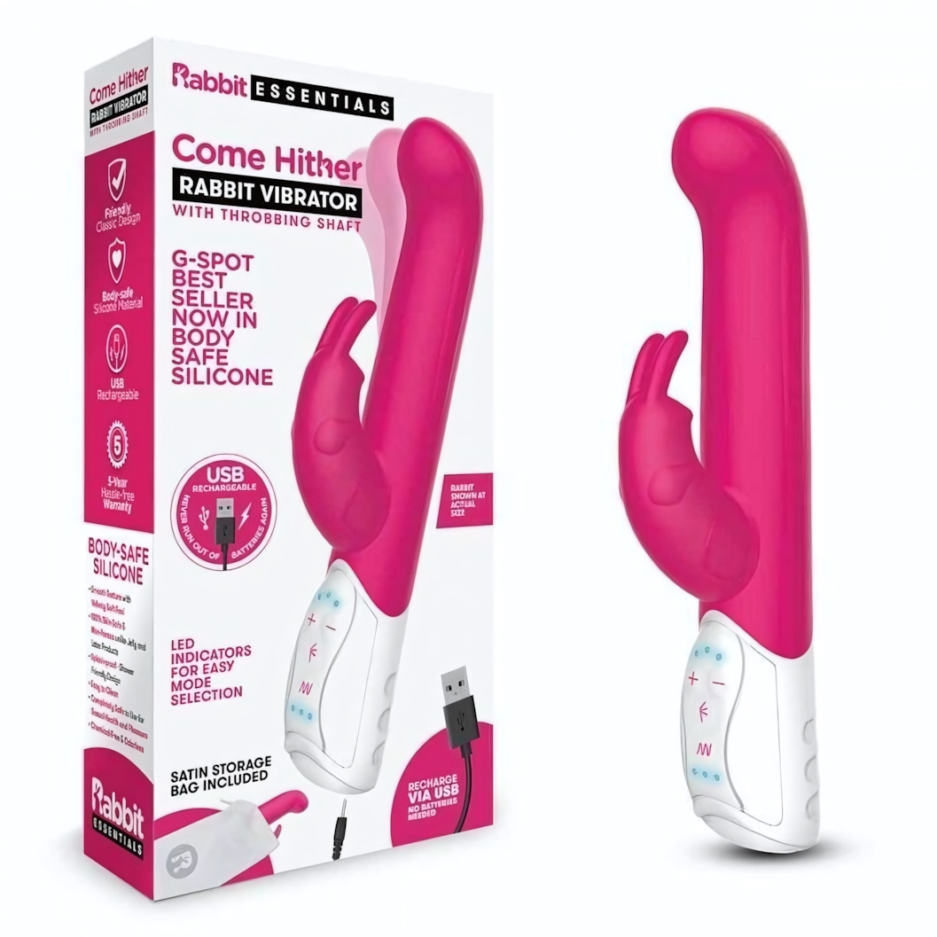 Вибромассажер для G-точки и клитора «Come Hither G-Spot Rabbit», двойная стимуляция, силикон, 24.5 см, розовый
