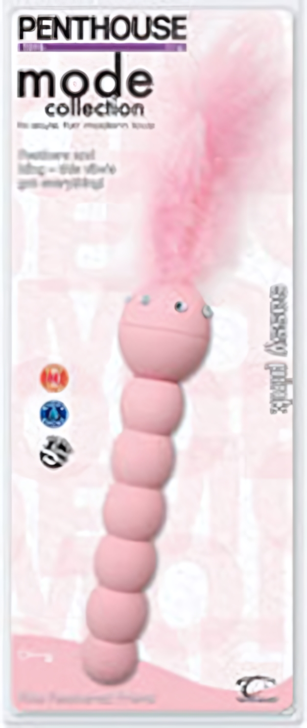 Массажер выполнен в виде цепочки из гладких шарообразных сегментов, которые удобно ложатся в руку и обеспечивают полный контроль над процессом. Верхняя часть украшена пышным розовым пером из мягкого ворсистого материала — он нежно касается кожи, создавая дополнительные приятные ощущения.