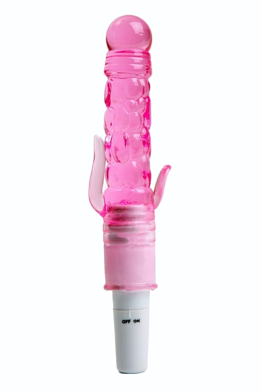 Вибромассажёр анальный с 2 отростками, 21 см, TPR, розовый, рифлёная поверхность