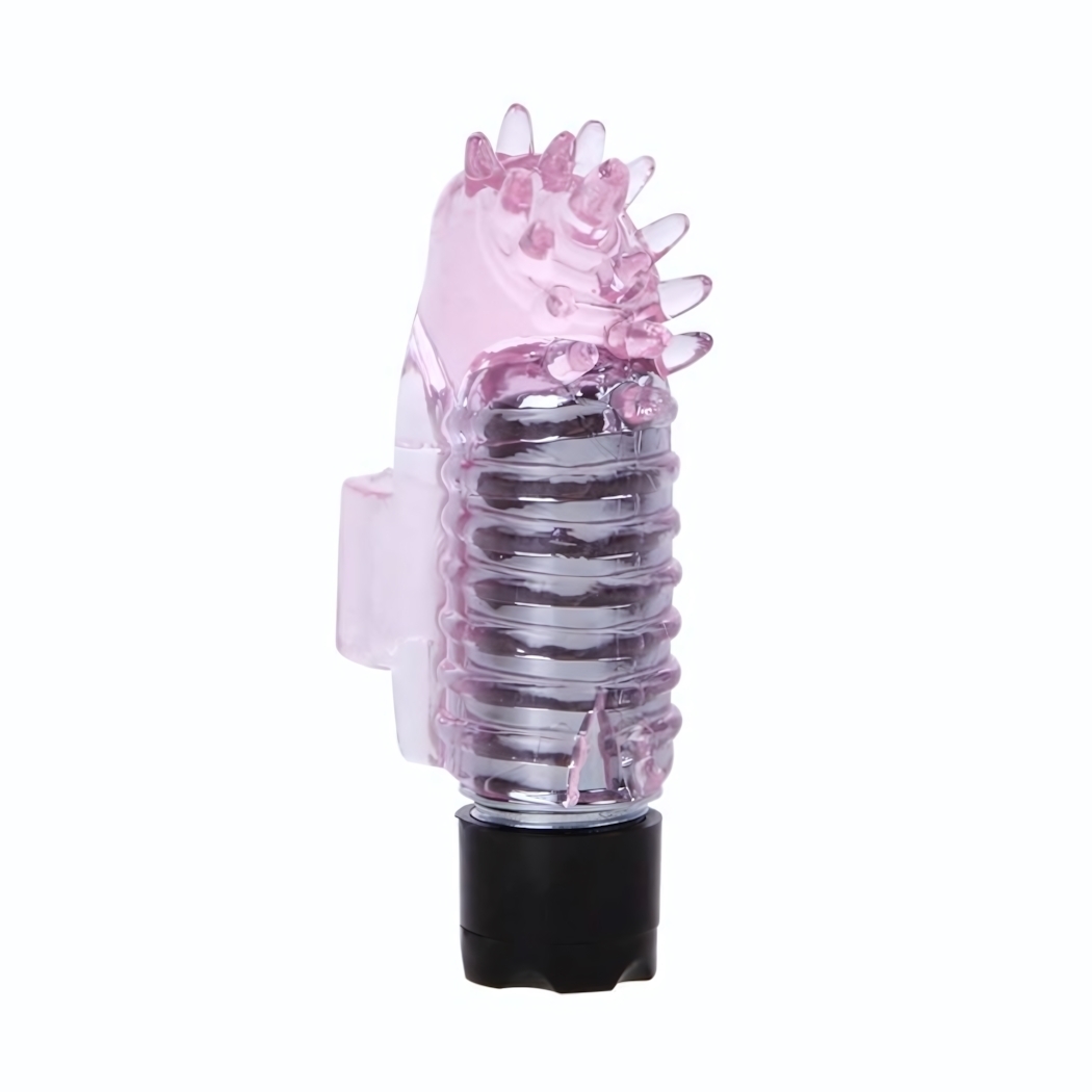 Вибростимулятор на палец Baile с шипами, розовый, TPR, 7.6 см, батарейки в комплекте