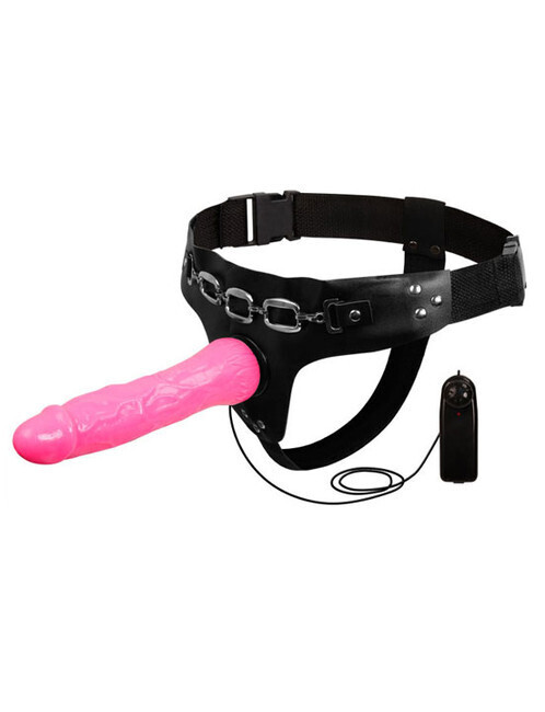 Страпон женский 'Domina' с вибрацией, розовый, длина 18.5см, диаметр 3.8см, TPR/кожа