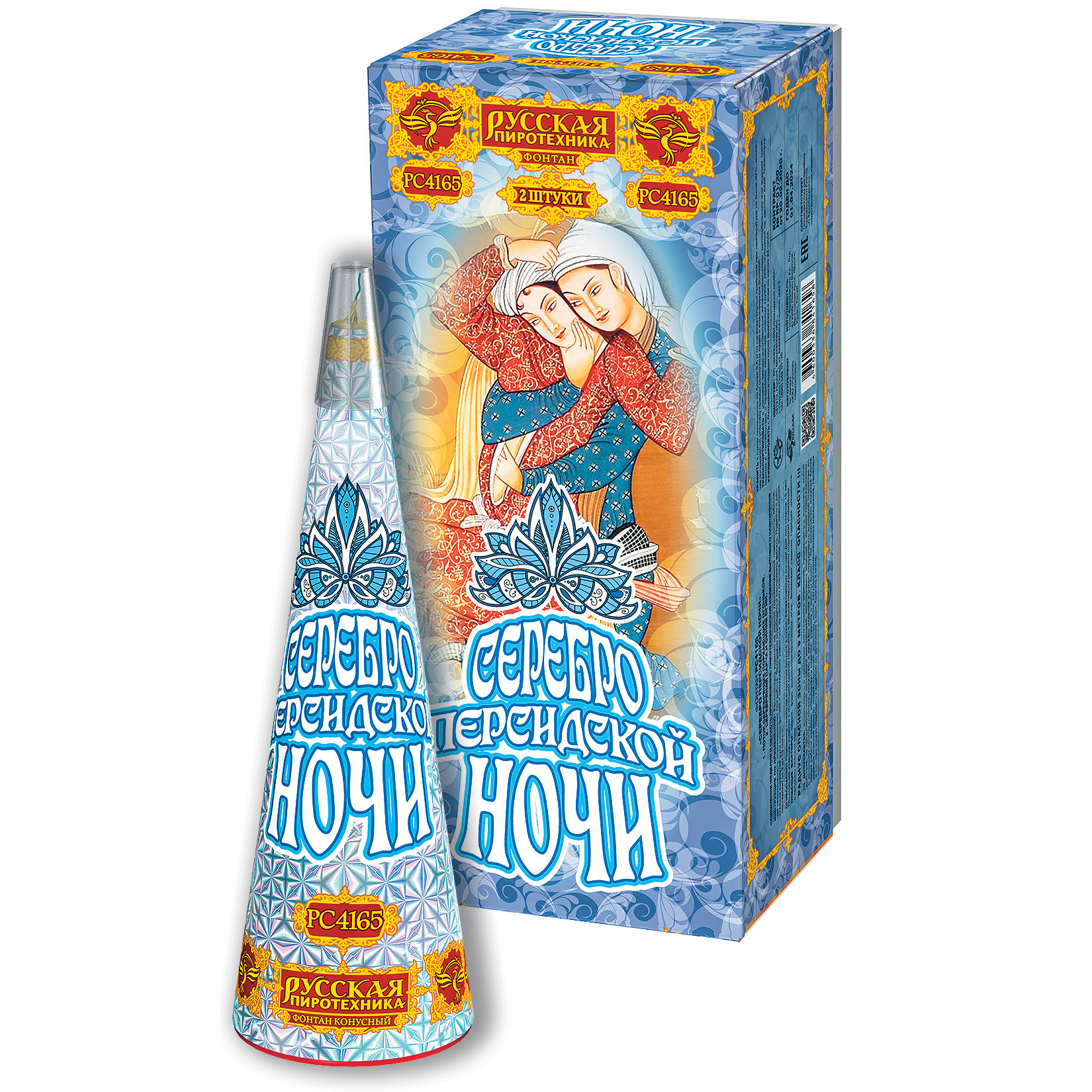 Фонтан представлен в упаковке, содержащей два конусных изделия, что позволяет вам использовать их одновременно для создания более яркого эффекта. Упаковка оформлена в холодных оттенках синего и белого, что придаёт ей праздничный вид. Не упустите возможность сделать ваш праздник незабываемым с помощью фонтана «Серебро персидской ночи»!