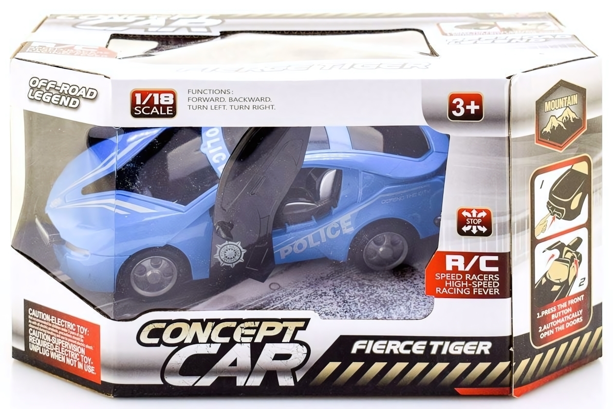 Машина выполнена в классической сине-белой расцветке с официальной символикой. Размер модели 1:18 оптимален для домашнего использования и outdoor-игр. Для работы требуется 2 батарейки АА (в комплект не входят).