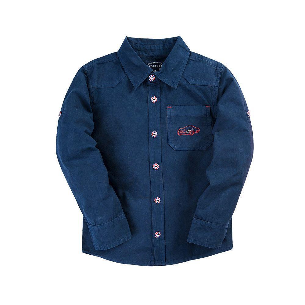 Рубашка для мальчиков Bonito, размер 92, синий с вышивкой, 100% хлопок, удобный крой