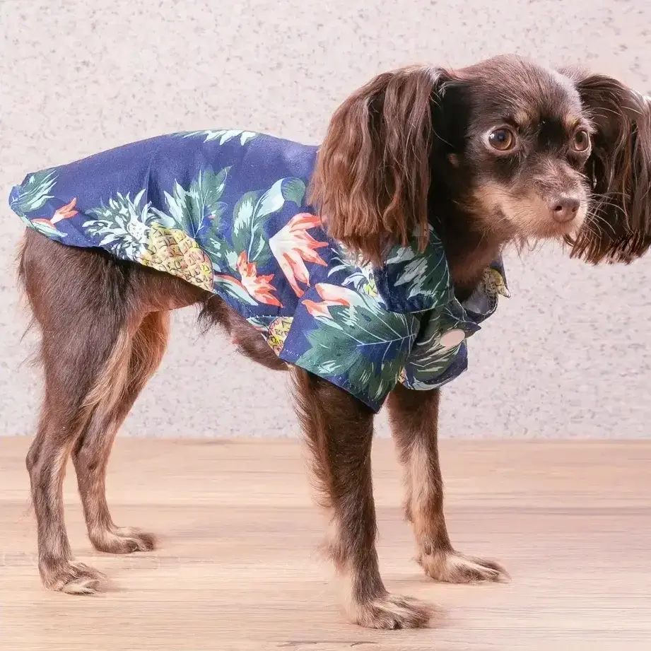 Подарите своему любимцу комфорт и стиль с рубашкой для собак и кошек «СТИЛЬНЫЙ БРО». Эта яркая и модная рубашка выполнена в насыщенном синем цвете с оригинальным принтом ананасов и цветами, что делает её идеальным выбором для прогулок и домашних мероприятий. Благодаря легкому и дышащему материалу, ваш питомец будет чувствовать себя комфортно в любое время года.