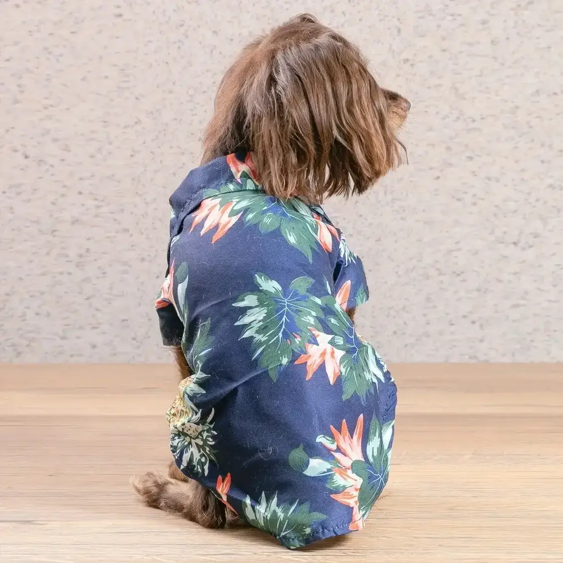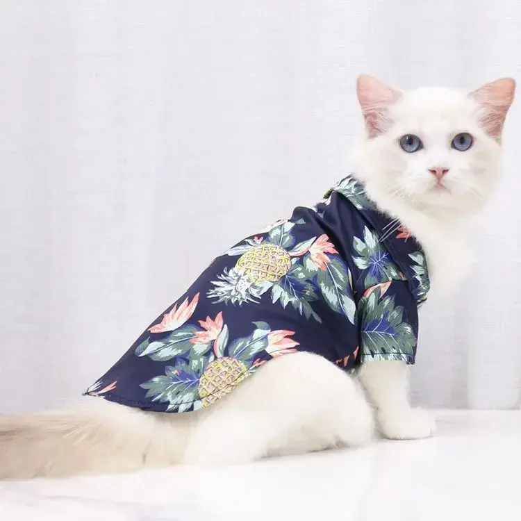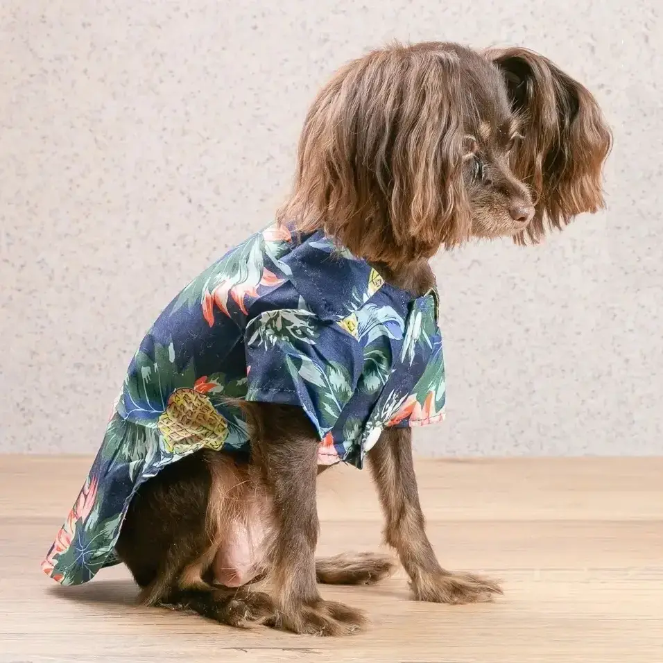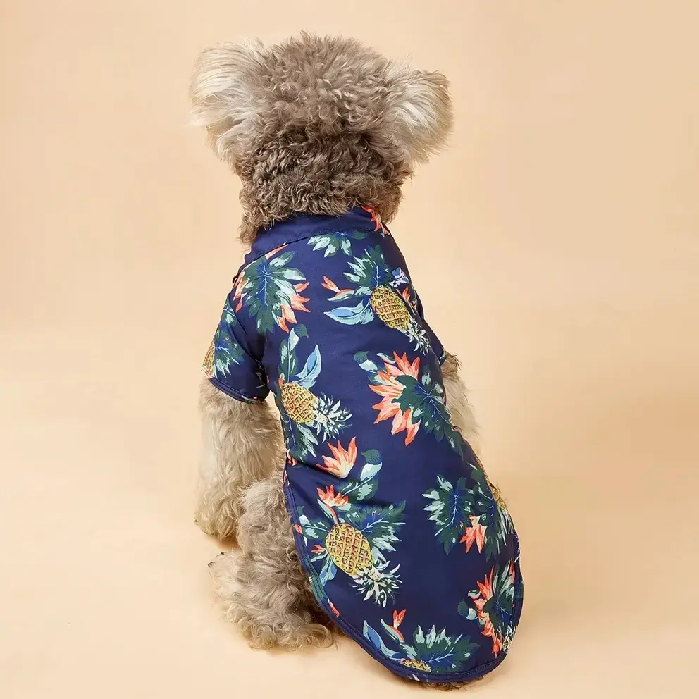 Рубашка для собак и кошек 'СТИЛЬНЫЙ БРО', размер XL, синий, принт ананасы