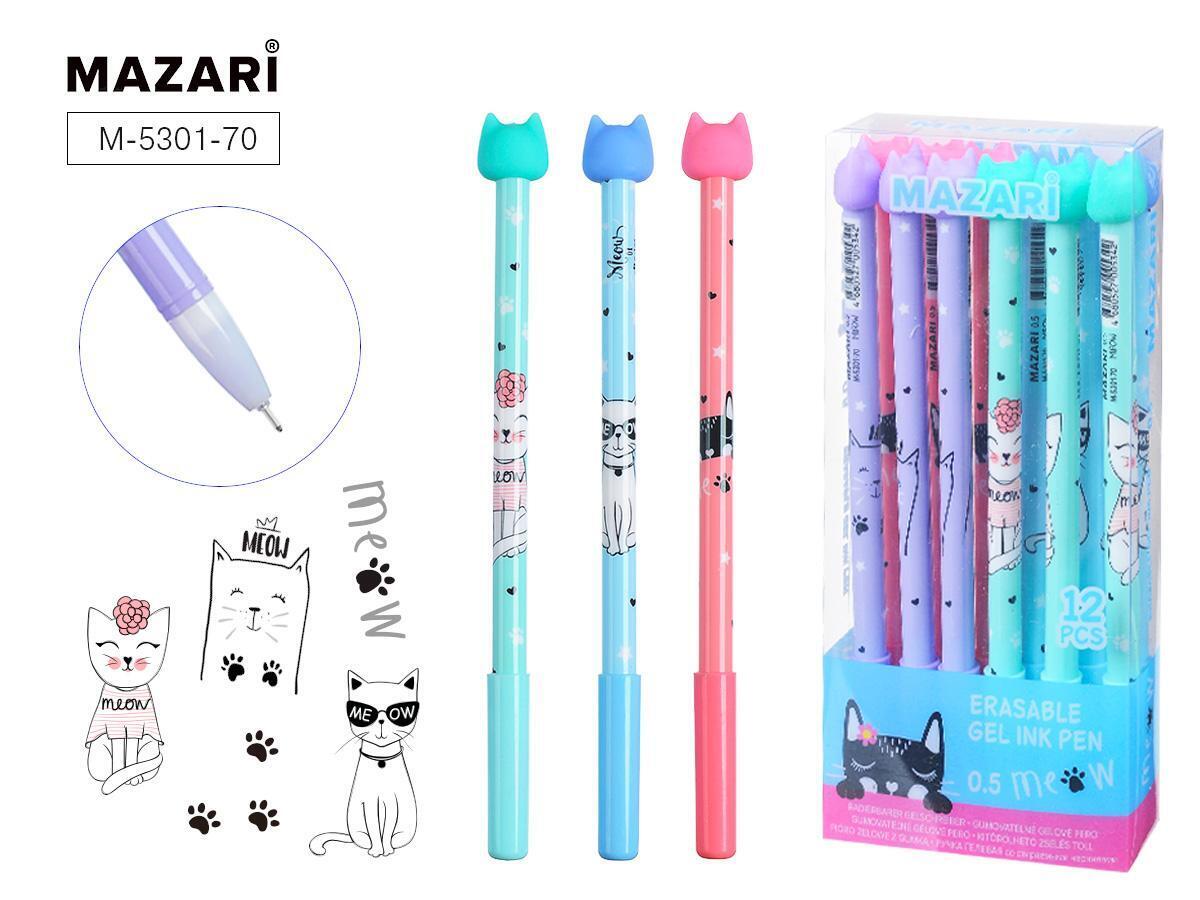 Ручка гель пиши-стирай 0.5 мм, синий, термочувствительные чернила, цветной корпус, сменный стержень 127 мм, Mazari