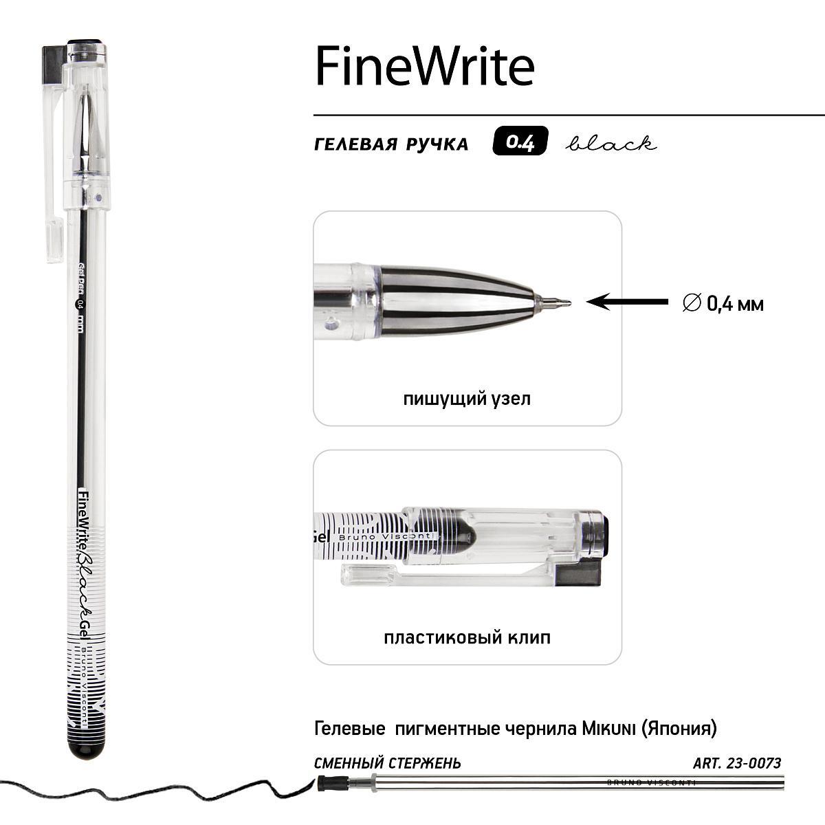 Ручка гелевая "FineWrite" 0,4мм, черная, пишущий узел Mikuni