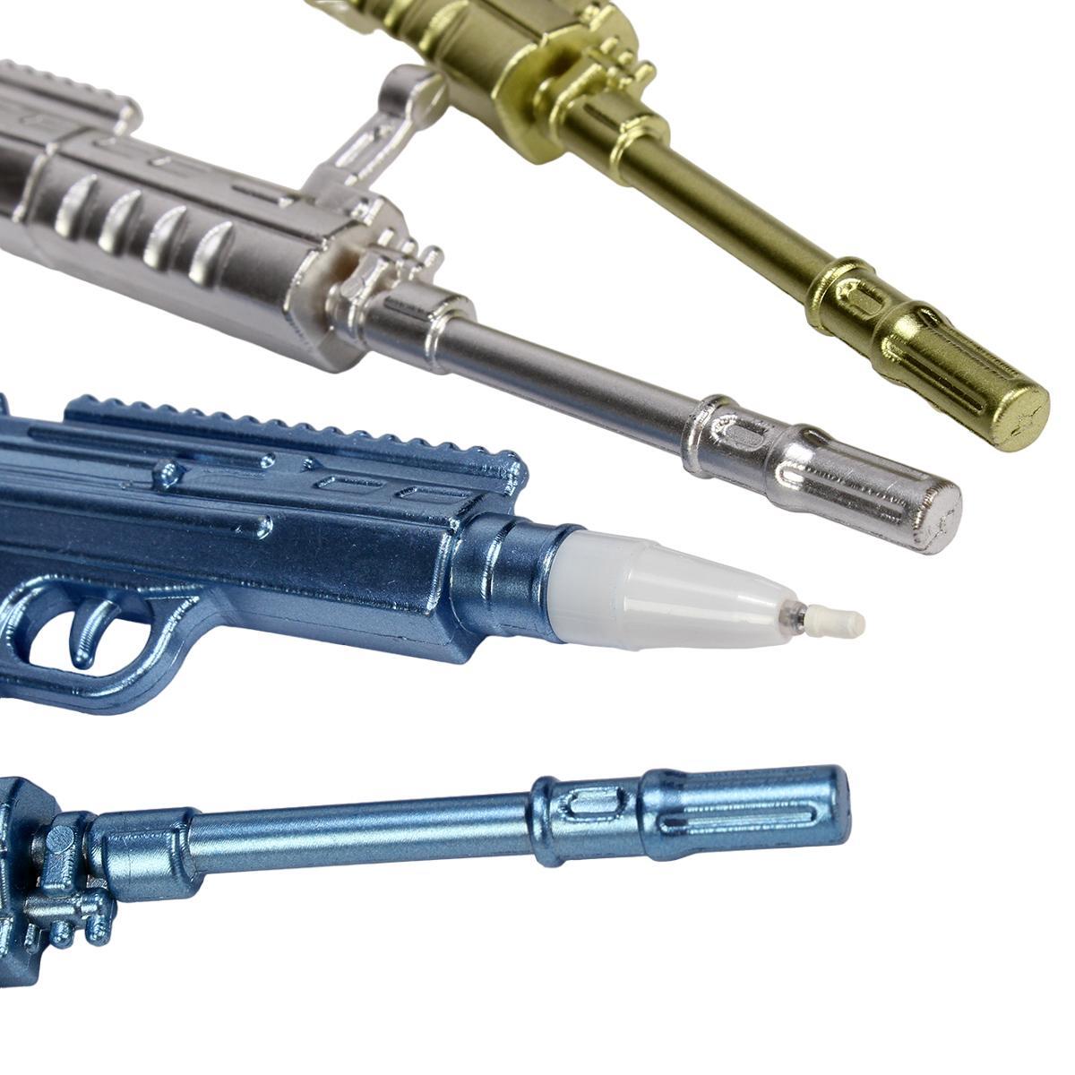 Оригинальная гелевая ручка в форме винтовки станет отличным выбором для юных любителей оружия и игр. Она не только привлекает внимание, но и обеспечивает комфортное написание благодаря качественному пишущему узлу толщиной 0,5 мм. Синяя чернила делают каждую запись яркой и четкой, а разнообразие цветов корпуса (синий, золотой и серебристый) позволяет выбрать именно тот вариант, который понравится вашему ребенку.