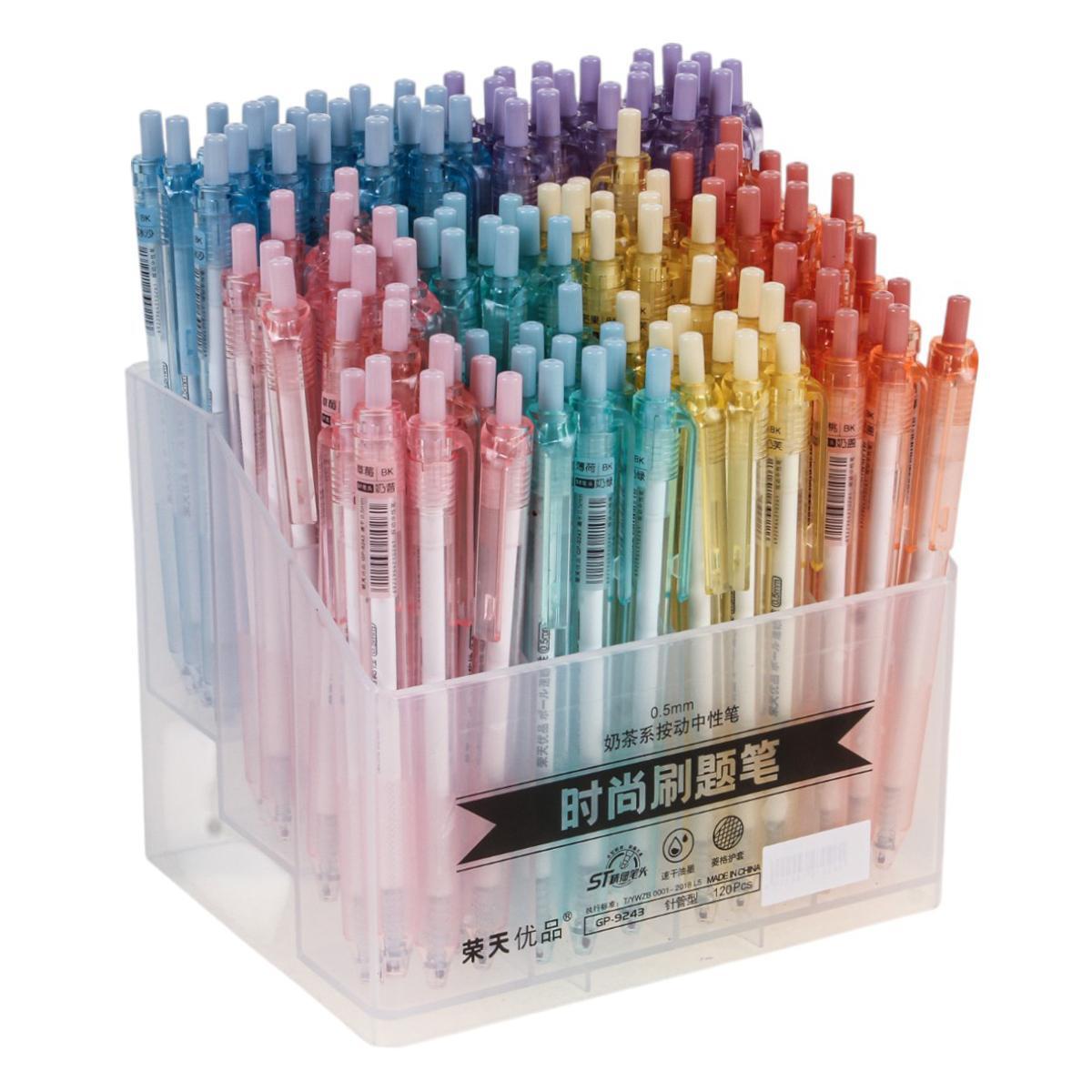 Ручки поставляются в практичном пластиковом боксе-подставке, который можно использовать повторно для хранения канцтоваров. Размер пишущего узла 0,5 мм обеспечивает точность письма, а качественные чернила гарантируют долговечность записей.