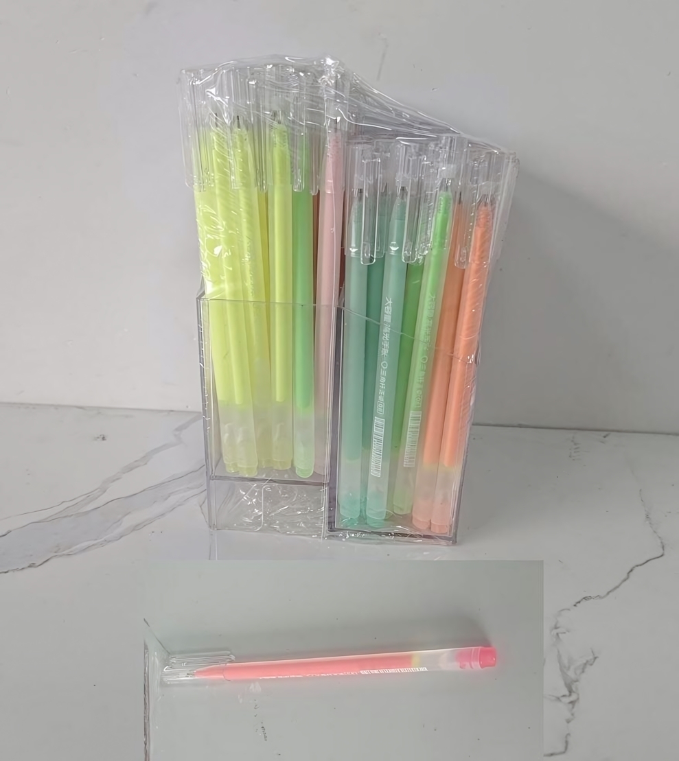 Каждая ручка имеет пластиковый корпус с колпачком в тон чернил. Диаметр пишущего узла составляет 0,6 мм, что гарантирует комфортное письмо без лишнего давления на бумагу. Цветовая гамма включает нежно-розовый, мятный, сиреневый, желтый, голубой и персиковый оттенки.