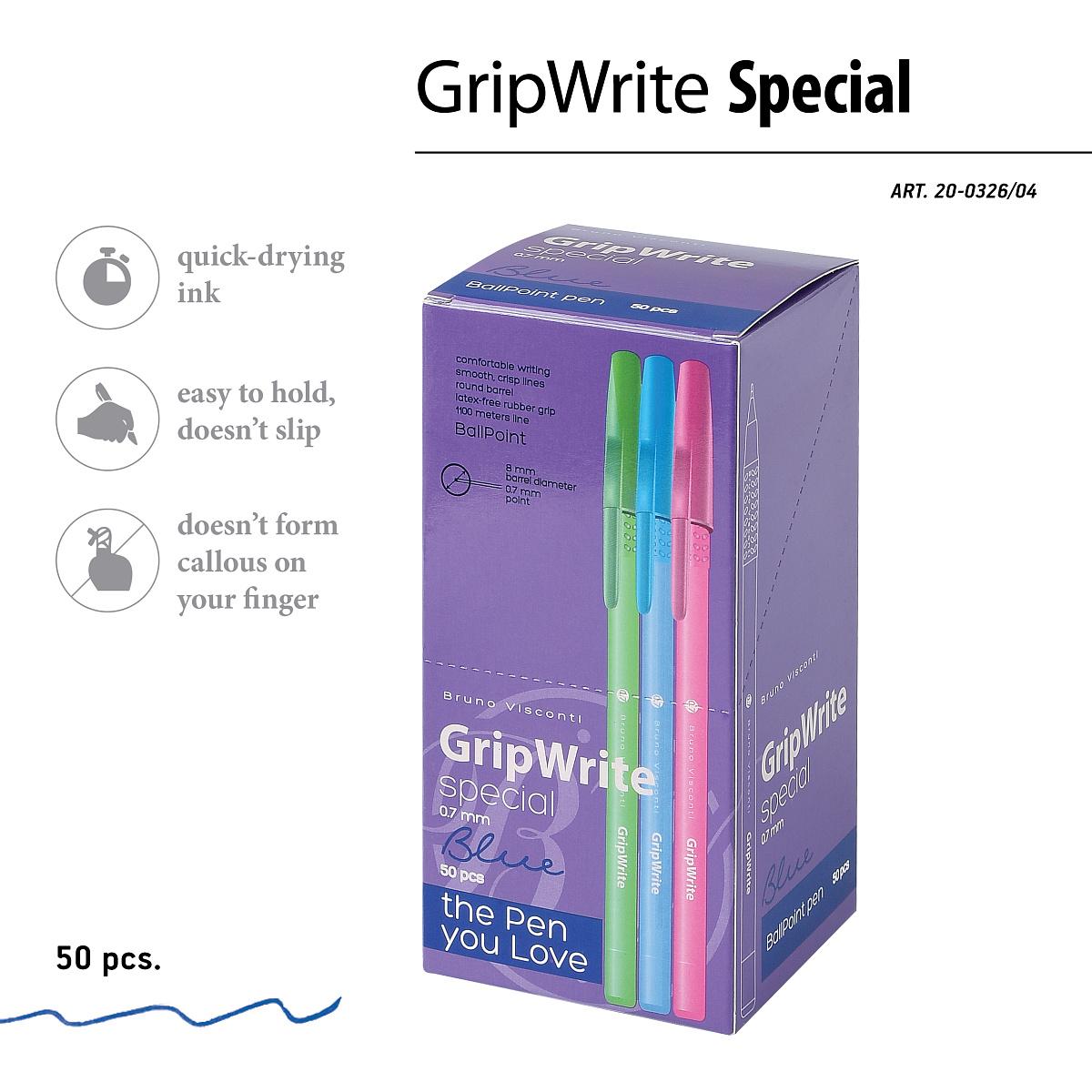 Шариковая ручка «GripWrite Special» 0.7 мм, 1шт., комфортный хват, 1100 м письма