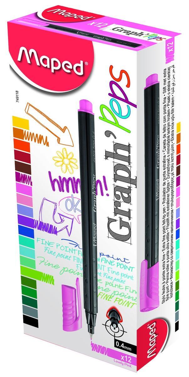 Ручка капиллярная 0,4 мм розовая "GRAPH PEP'S", Maped, для точных линий