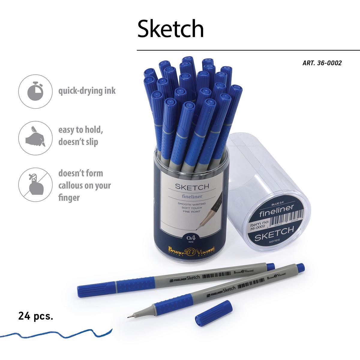 Ручка капиллярная "Fineliner. Sketch" 0,4мм, 1шт., синяя, с грипом, BrunoVisconti