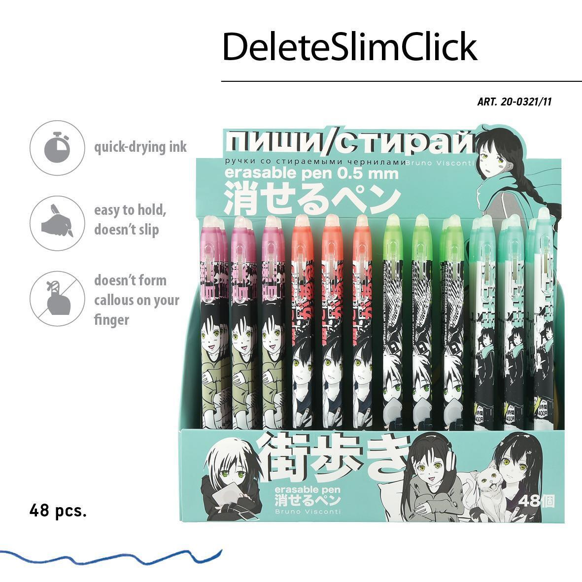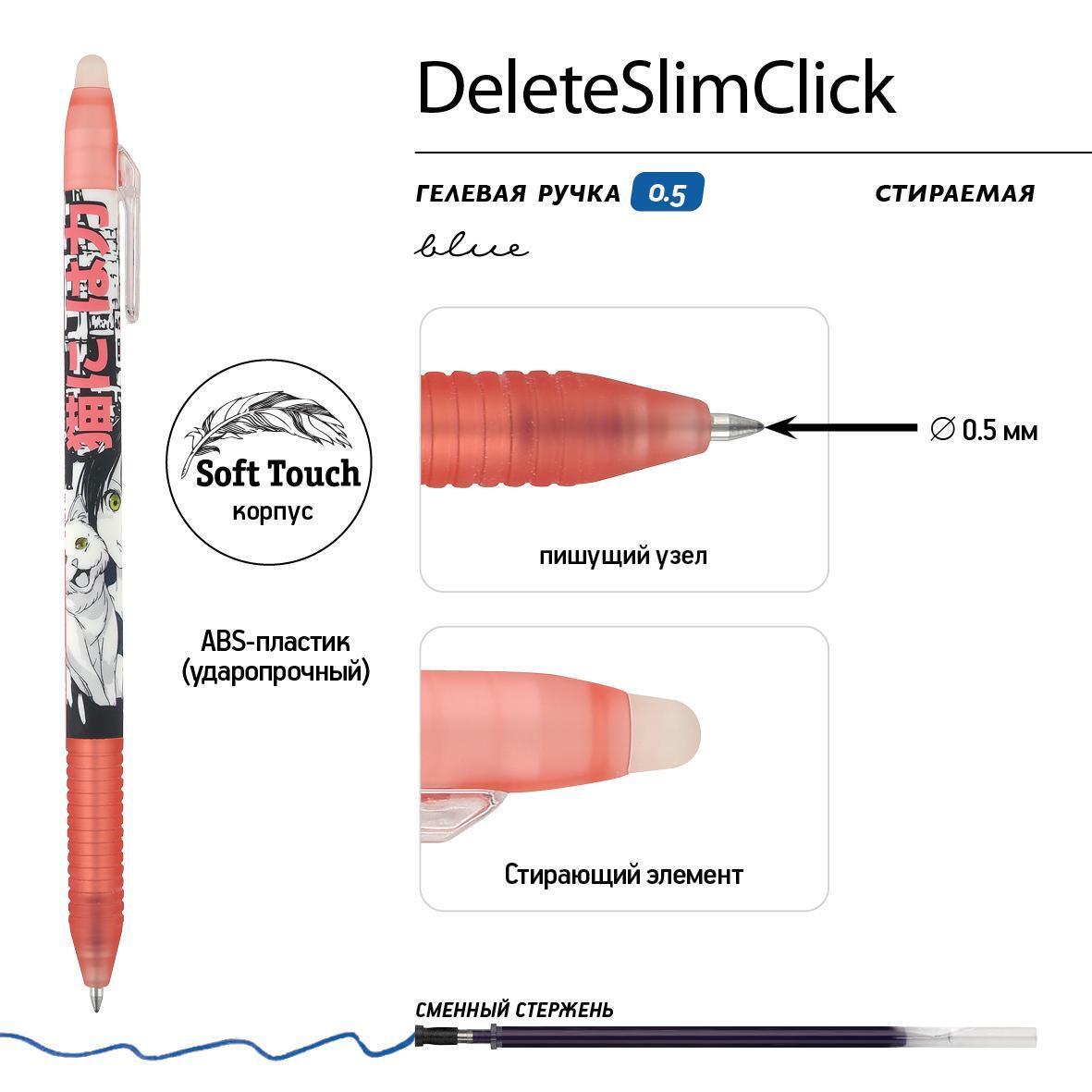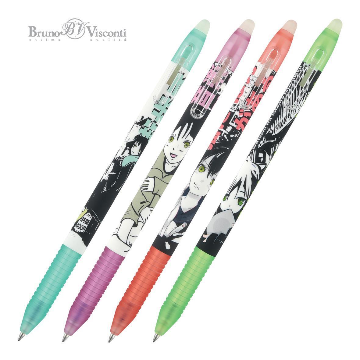 Ручка гелевая стираемая 'DeleteSlimClick' 0.5 мм, 4 цвета, аниме-дизайн, резиновый грип (Bruno Visconti)