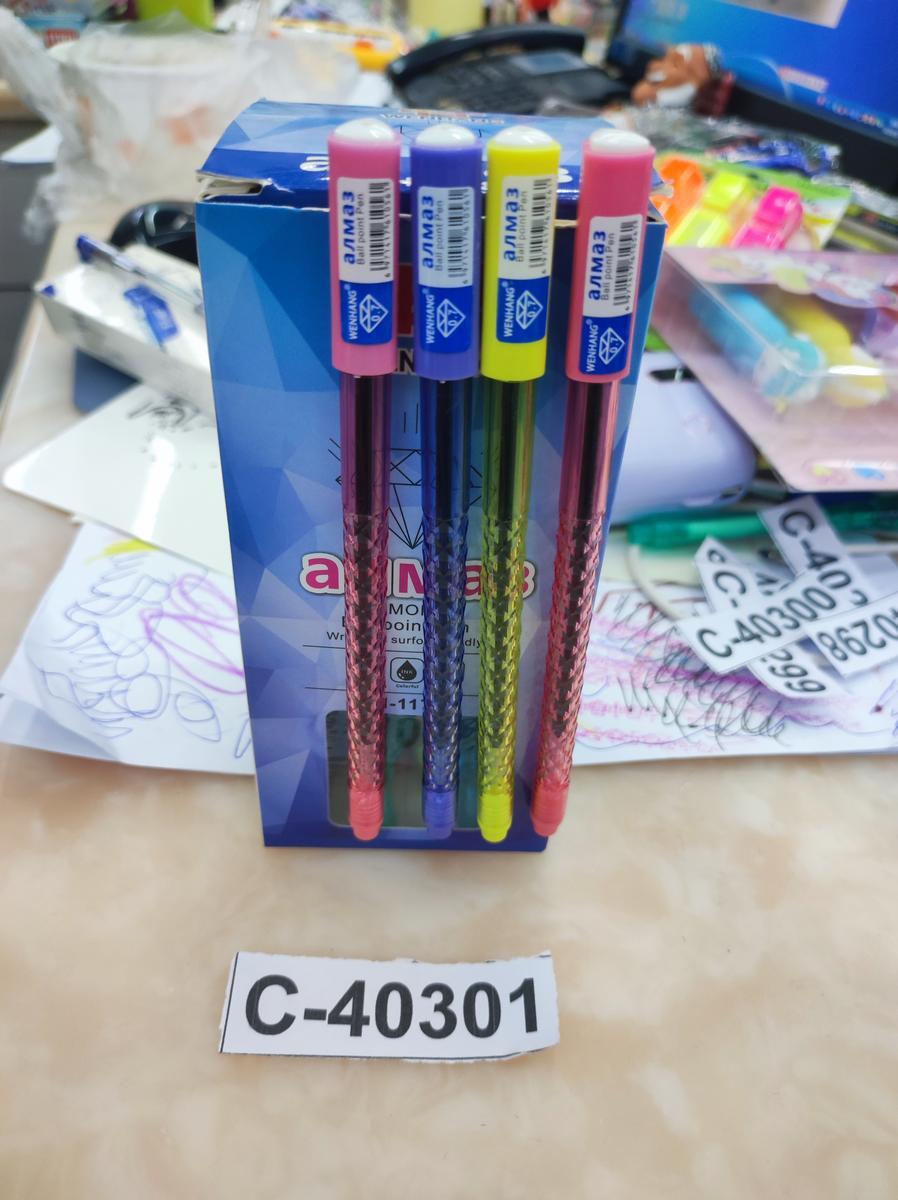 Ручки упакованы в картонную коробку по 50 штук, что обеспечивает удобство хранения и транспортировки. Штрих-код на каждой ручке.