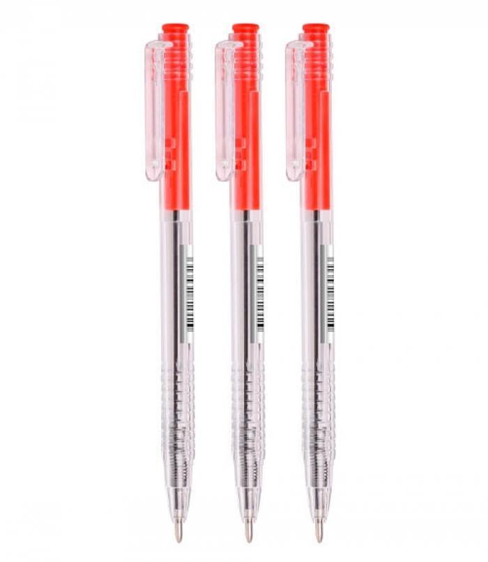 Ручка масляная автоматическая 0,7мм, красная, с насечками для удобства