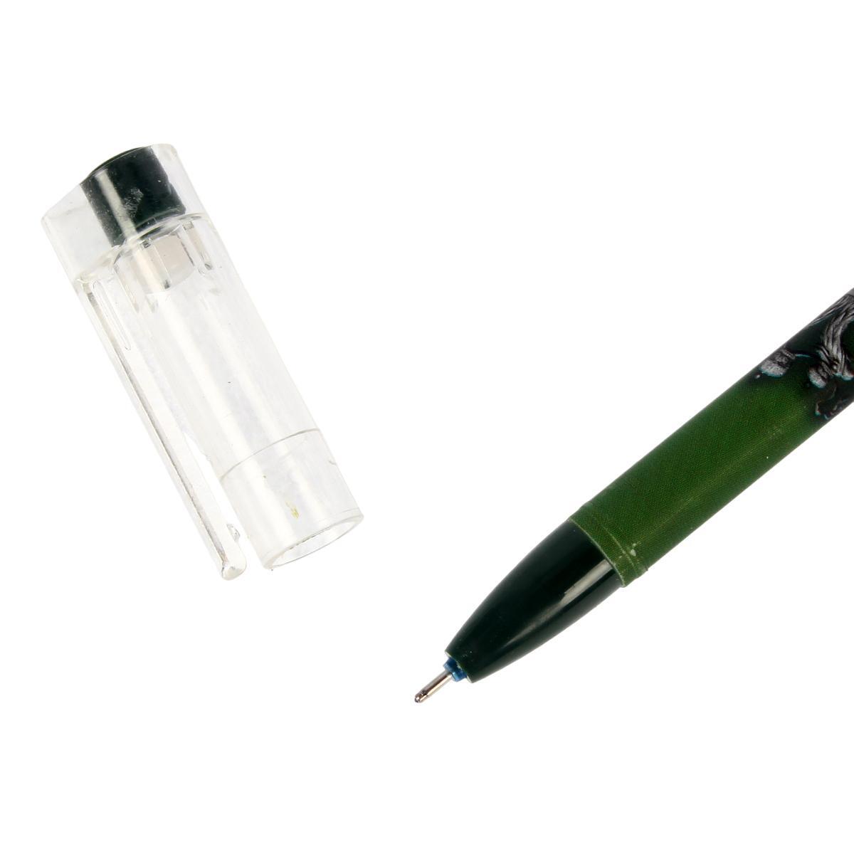 Корпус ручки украшен стильными принтами военной тематики, которые особенно понравятся мальчикам. Прозрачный колпачок защищает пишущий узел и крепится к одежде благодаря удобной клипсе.