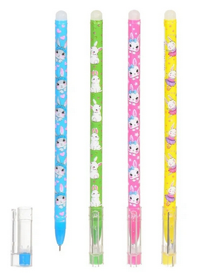 Ручка гелевая со стираемыми чернилами 0.5 мм, серия «Зайчата», синие чернила, яркий дизайн