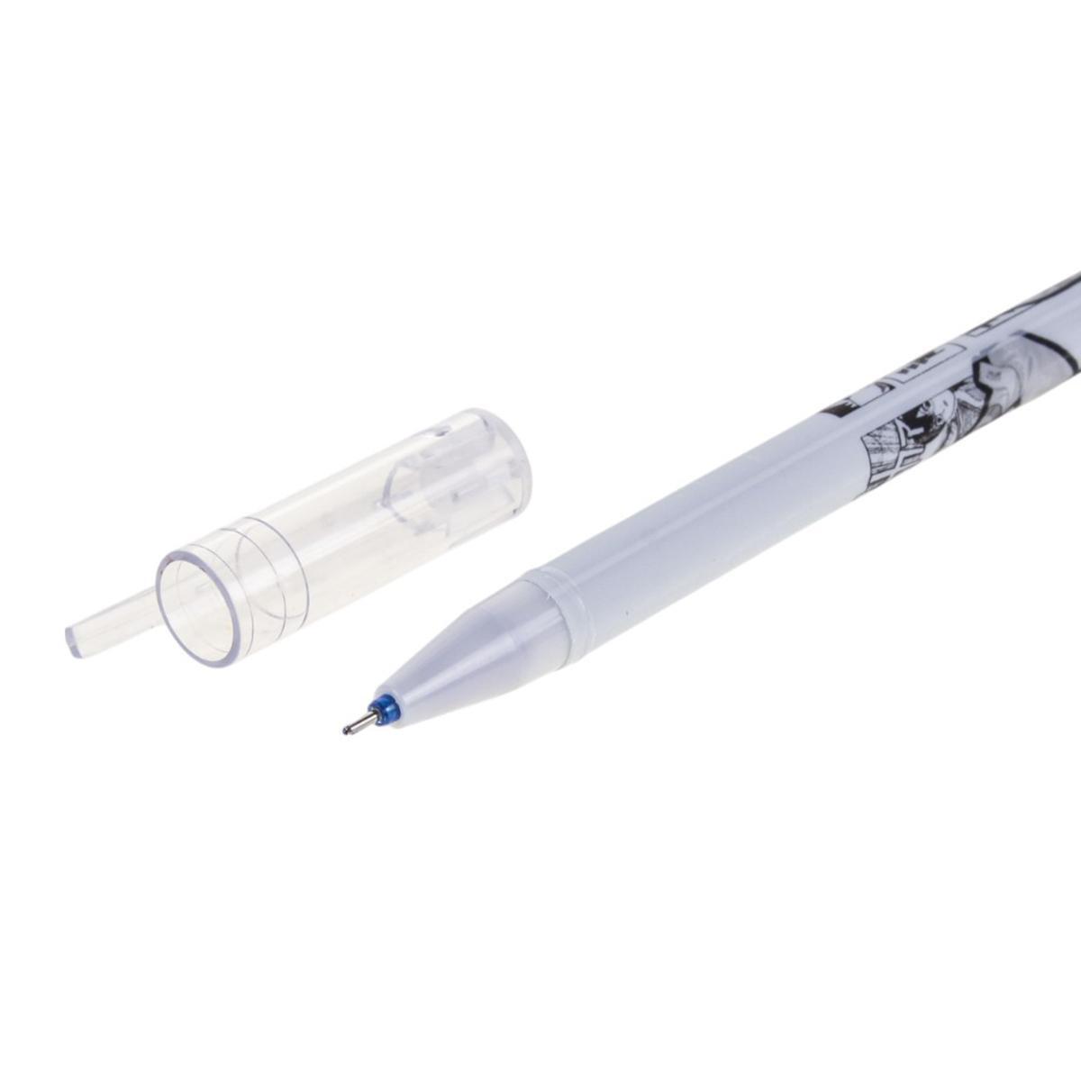 Корпус из ударопрочного пластика с черно-белым принтом в стиле манга. Длина соответствует классическим канцелярским ручкам для комфортного письма. Синие чернила оптимальны для повседневного использования — не раздражают глаза и хорошо видны на любой бумаге.