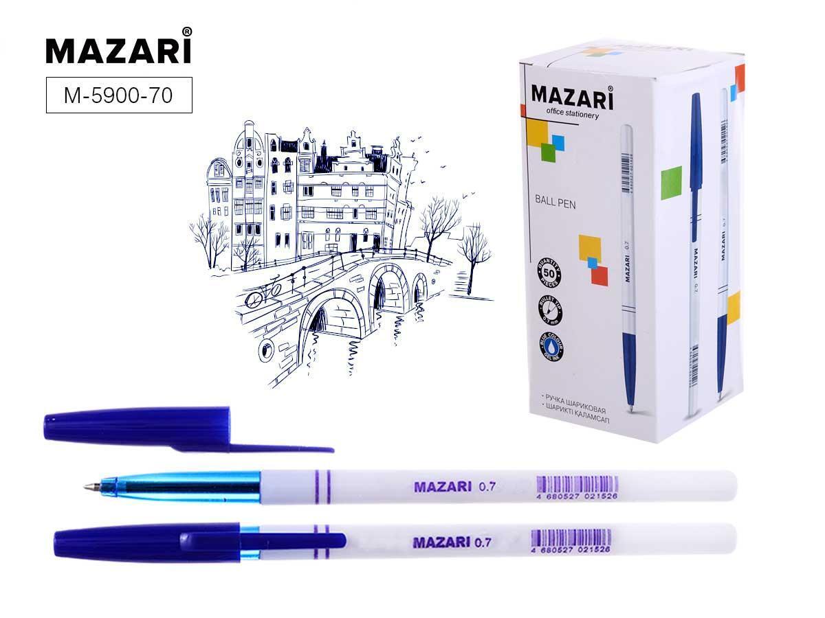 Ручка шариковая 0,7 мм синяя, белый корпус, сменный стержень 140 мм, модель “M‑5900‑70” mazari