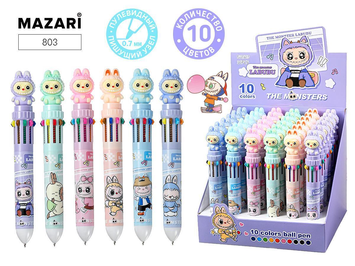 Ручка шариковая автоматическая, 10 цветов, 0.7 мм, сменный стержень 68 мм, цвет в ассортименте, «Зубастик»