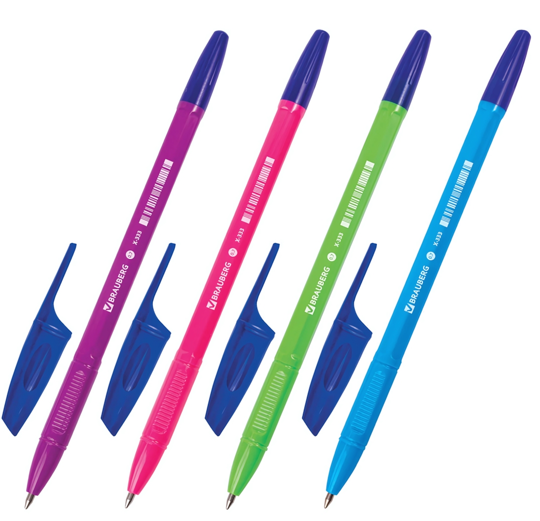 Ручка шарик. узел 0,7 мм. линия 0,35 мм. X-333 neon solid, синяя, корпус ассорти (BRAUBERG)