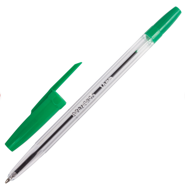 Ручка шариковая "Line" зеленая, пишущий узел 1мм, линия 0,5мм, корпус прозрачный